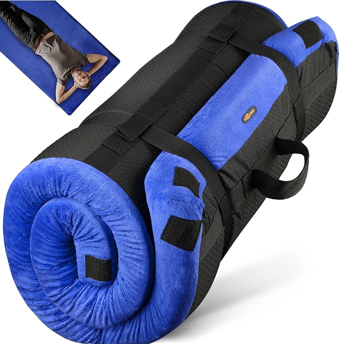 - 【Outdoor Uses: Camping/Road Trips】Outdoor, it can be used as a portable travel mattress, camping bed roll, a temporary bed in tent camping, car camping, and road trips(SUV/RV/Van/Truck/Camper). Way more comfortable and easier to use than air mattresses. It also can be used to soften up a cot or a couch. It comes with a sturdy carrying case with straps, can be rolled up nicely for storage.【Not for long-distance backpacking/hiking.】