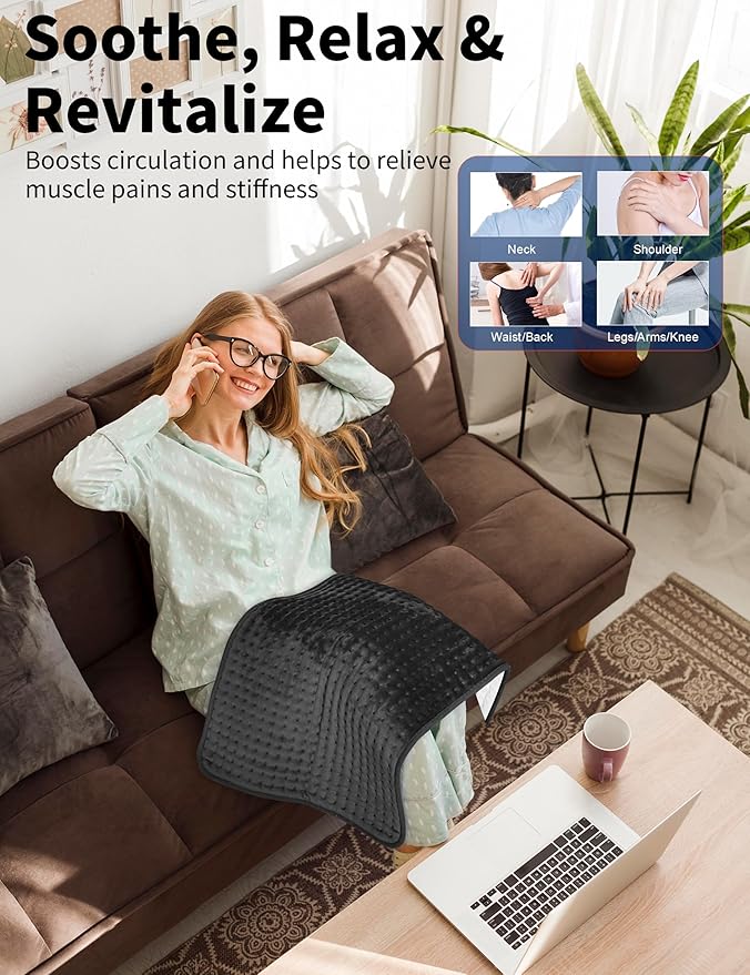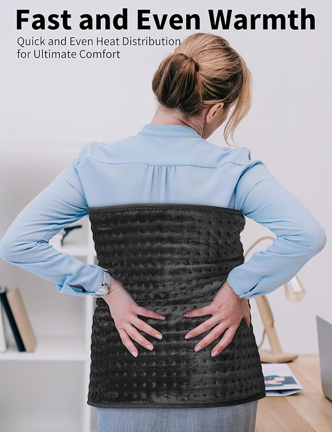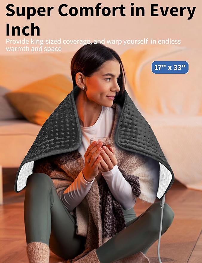 - King Size for Full Body Comfort: The extra-large 33''×17'' xl heating pad is designed for full-body use, promoting blood flow, relieving pain, and relaxing muscles.