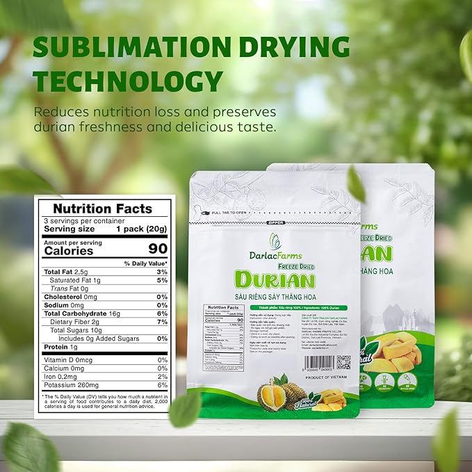 - โจ[๐๐ฎ๐๐ฅ๐ข๐ฆ๐๐ญ๐ข๐จ๐ง ๐๐ซ๐ฒ๐ข๐ง๐ ] Our freeze-dried durian bites are produced in modern "Sublimation Drying" technology, which reduces nutrition loss and preserves durian freshness and delicious taste.