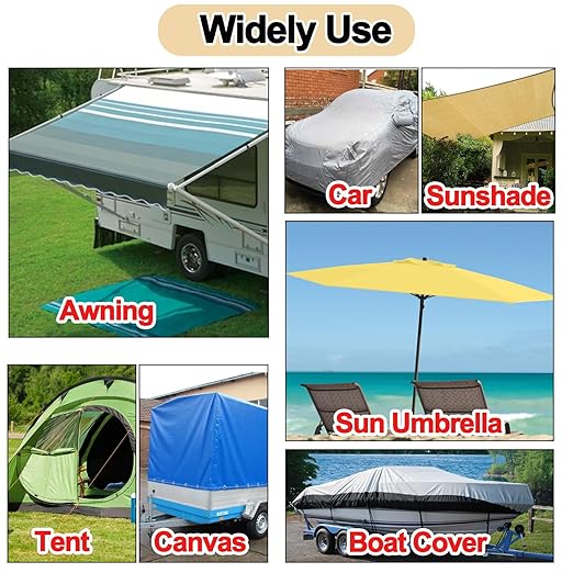 - 【Strong Stickness】Awning repair tape is made of a high density material that is stronger than regular repair tape and has superb adhension. It has fiberglass strings that make it even stronger. Tent Repair Tape can repair products that are made of a variety of materials such as canvas, leather, vinyl, fabric, tarpaulin, glass, PVC plastic, tarpaulin and more!