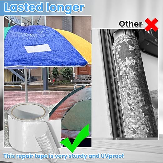 - Waterproof and Reinforced tape: This repair tape is very sturdy, with a surface that is not only waterproof, but also wear resistant, corrosion resistant, UVproof, Tear resistance. Very suitable for outdoor use