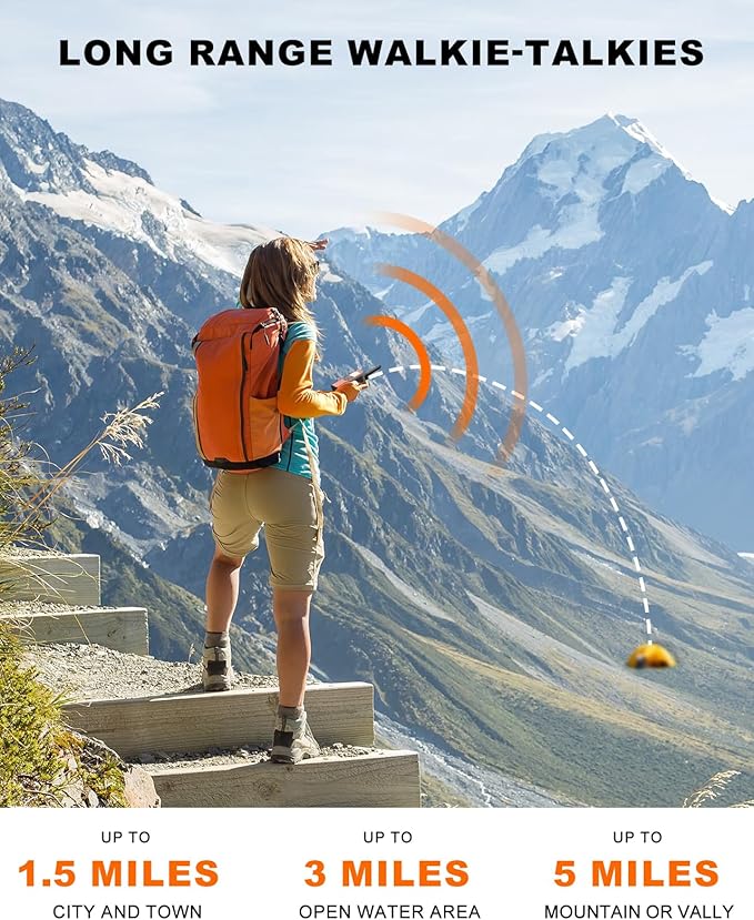 - LONG-RANGE TRANSMISSION: NXGKET Long-range walkie-talkies can handle different scenarios easily. Adopt upgraded custom gain antenna and lossless transmission technology with automatic noise reduction technology and stronger penetration. You can speak clearly and your children can hear clearly within 1.5 miles indoors. Adverse weather, buildings(yard, street), cars, and voyages will affect the range. Communicate at longer distances in open areas with little or no obstacles