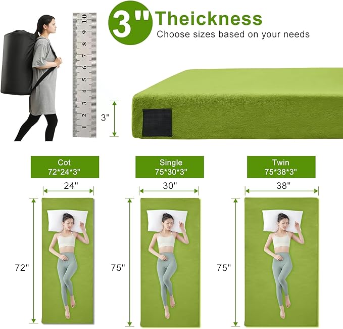 - ๐๏ธใWaterproof CoverใThe super soft velvet fabric is detachable and washable. TPU waterproof membrane is used at the top and bottom to protect foam from rain. Honeycomb shaped anti slip bottom, more slip resistant than other sleeping mats. The sleeping mat is also equipped with a layer of knitted fabric that absorbs water and prevents dust. Multiple protections to protect foam.