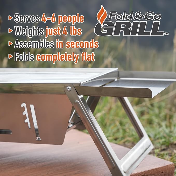 - Durable and Portable: Crafted from high-quality 304 stainless steel, our compact grill is built to last and withstands heavy items with ease. With a load capacity of 33 lbs, it's perfect for camping, picnics, and backyard BBQs. Plus, it weighs under 4 lbs and folds to under 1" flat, making it ideal for on-the-go grilling.