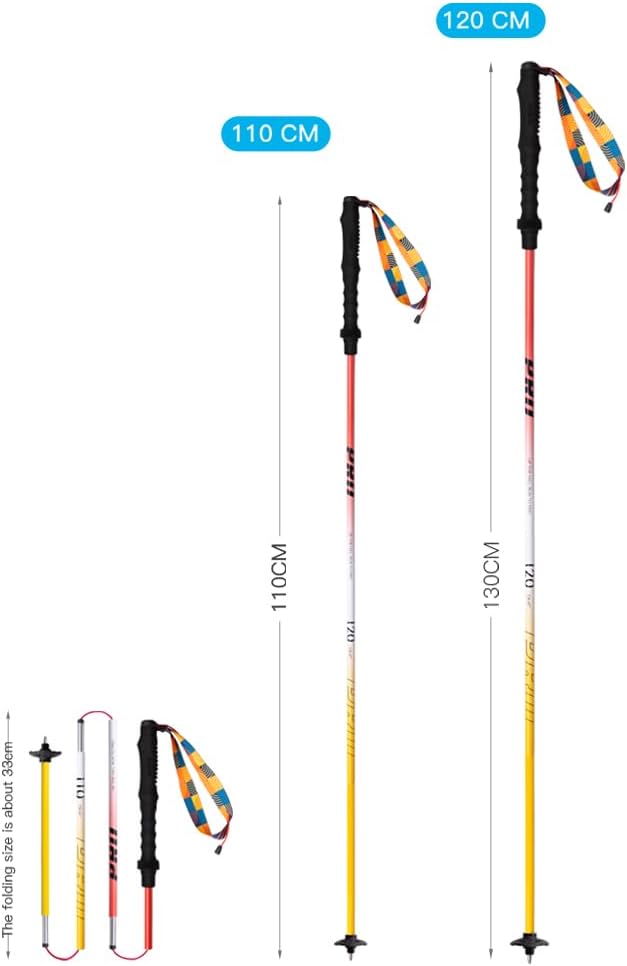 - 🏔️【Adjustable】The trekking pole has a foldable design and can be retracted into four folds, can be adjusted freely fits for different needs with length scale. Folds to a portable size of 12.99 inches (33 cm). When not in use, Fitting into backpack, luggage cases, or duffel bags for compact travel.