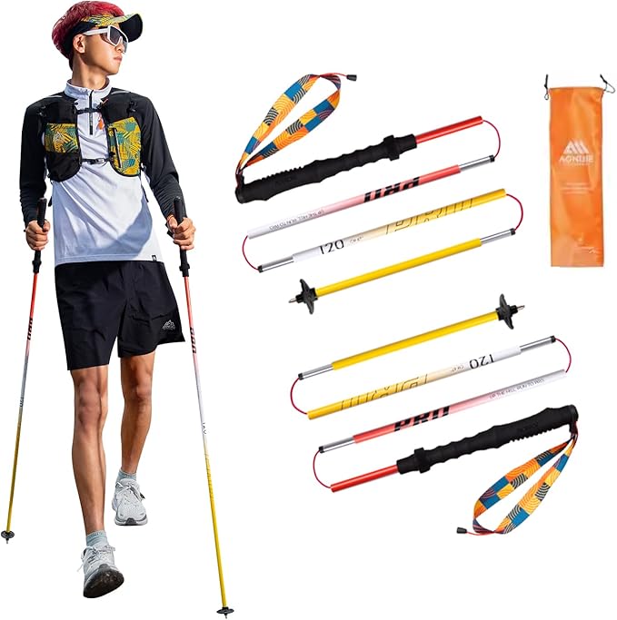 AONIJIE Trekking Poles - 2 Pcs Collapsible Aluminum Alloy 7075 Hiking Poles with Anti-Shock and Quick Lock System, Ultralight for Hiking, Camping, Mountaining, Trekking