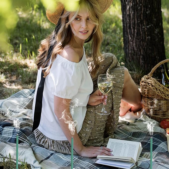 - Easy to use - Perfect for around out huge yard and for camping. So easy to use on the patio, Helps keep the Mosquitoes at bay. Position the incense sticks around your patio at a distance of approximately 12 feet. You will need to burn at least 3 or four sticks at a time.