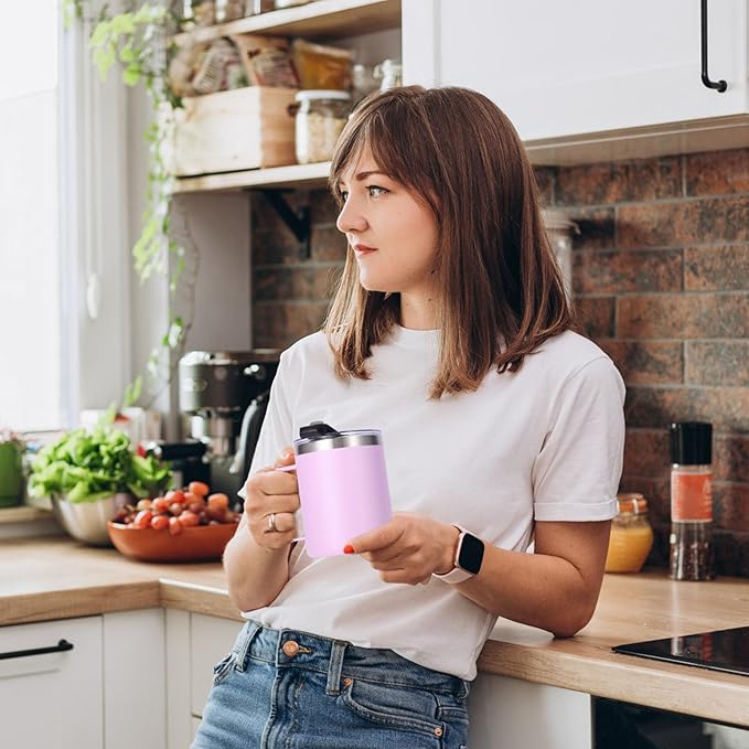Volhoply 12oz Insulated Leakproof Coffee Mug with Flip & Straw Lid Bulk 8 Pack,Double Wall Vacuum Stainless Steel Travel Tumbler Cup with Handle,Reusable Camping Keep Cold/Hot(Purple,8 Set)