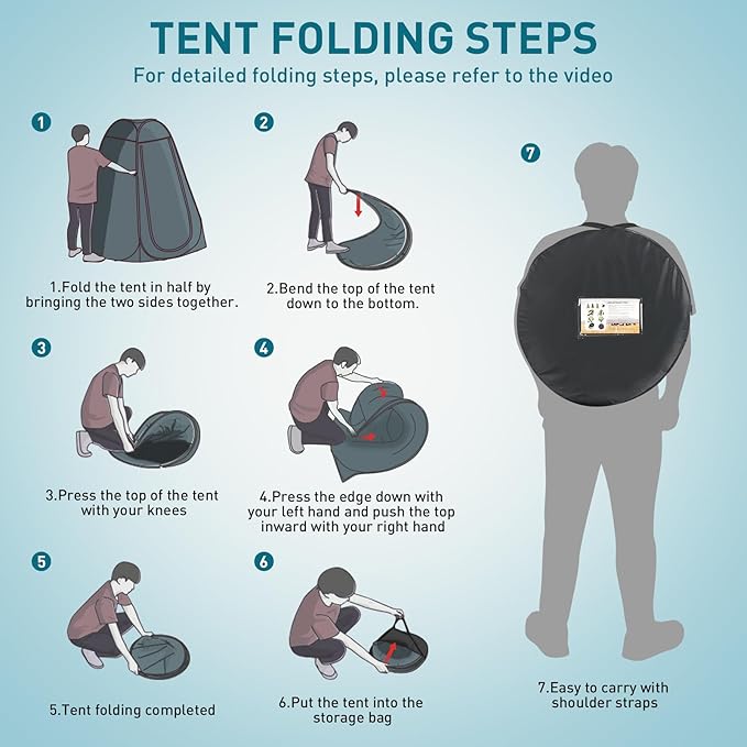 - Included Components : 10pcs Disposable shower cap, Collapsible bucket, LED Light, Pop-up tent, Shower pump