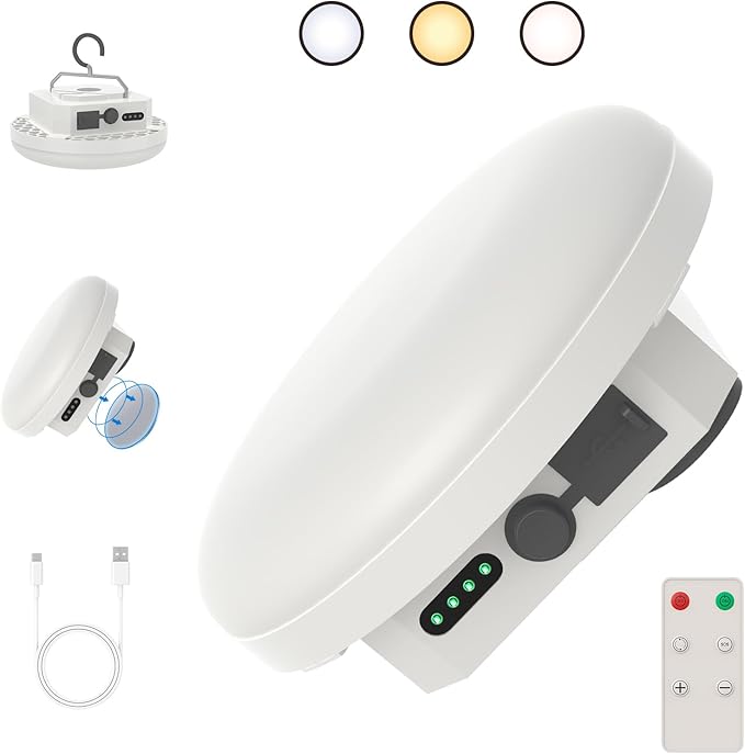 Camping Tent Light LED Rechargeable Portable Hanging Lantern with Remote,IPX5 Waterproof Outdoor Lights with Battery Power, Camp Lamp Light for Glamping Indoor Outages Car Repair