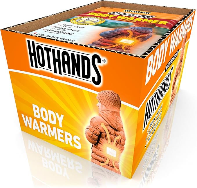 - NATURAL, LONG-LASTING HEAT - Each HotHands Adhesive Body Warmer is made with natural ingredients and lasts up to 12 hours when used as directed, which means you get 240 hours of soothing warmth. Perfect for your favorite activities, like tailgating, outdoor spectator sports, skiing, hunting, ice fishing and camping.
