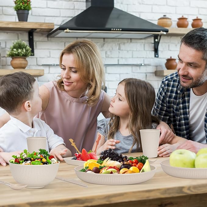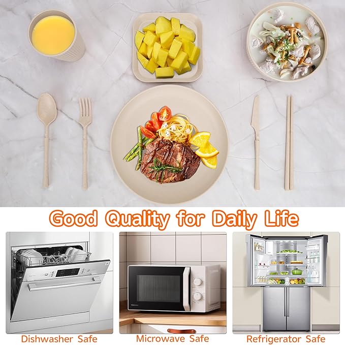 - 【Safe Material and Stackable】Our dinnerware set designed with space-saving style and smooth rounded edges. Made of food grade PP material. Safe and healthy for everyone.