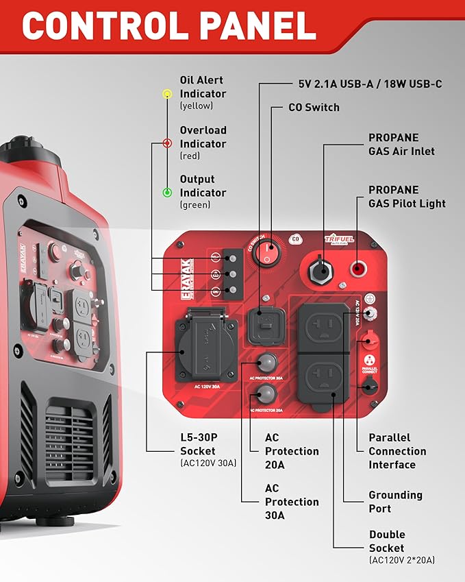 - Seamless Fuel Switching – Erayak's gas priority system auto-switches to gasoline when gas runs out, eliminating shutdowns for uninterrupted power. With dual-fuel capability, enjoy extended runtime for reliable, long-lasting energy.