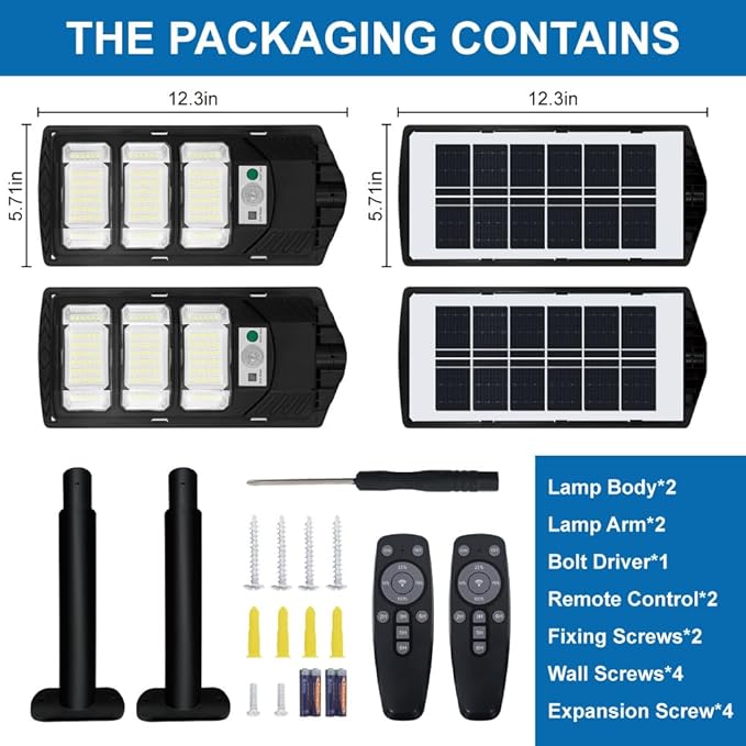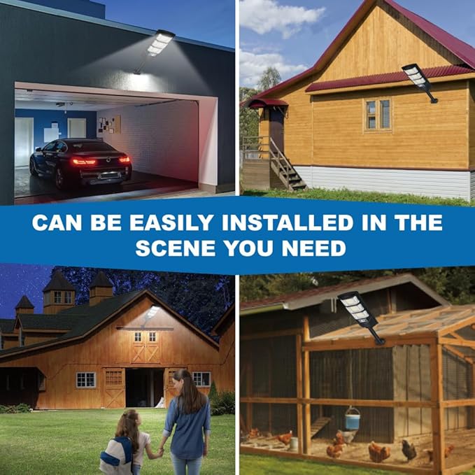 - 🌈Easy to install: Solar street lights do not require wiring, just ensure that the solar panel can be directly exposed to the sun, and fix its base to the wall to complete installation. Suggested installation height: Below 13 feet, you can install it in a barn, garage, terrace, or corridor.