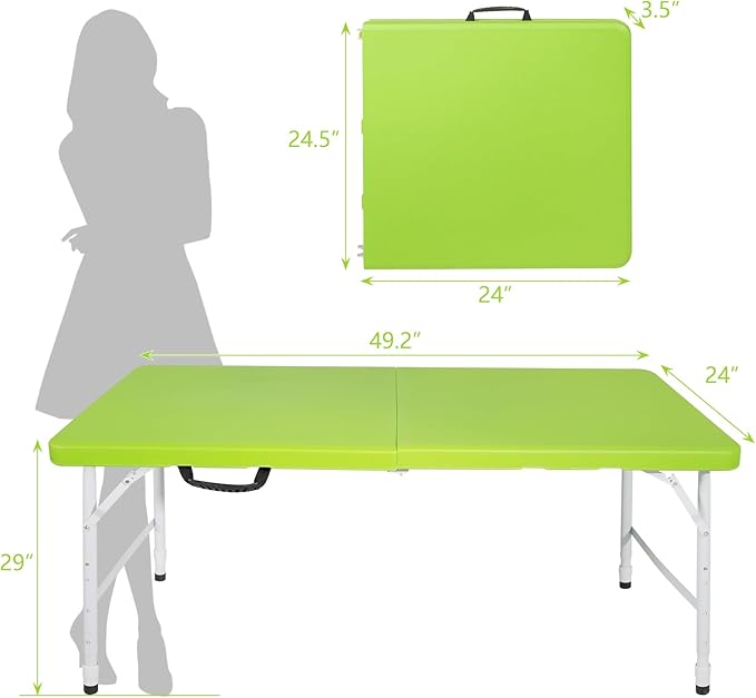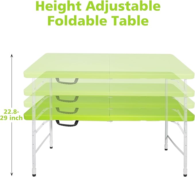 4 FT Folding Table with Carry Handle, Portable Fold-in-Half Plastic Table, Rectangle Foldable Table for Indoor/Outdoor Green