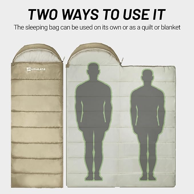 - Unique Design: The foot area of this 4 season sleeping bag is equipped with a separate zipper that can be opened to provide ventilation for the feet. Zip it can double as a comfortable blanket, catering to various scenarios. Complete with a cap design at the head to keep warmth in via rope contraction.