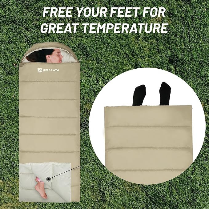 - Temperature: The 3lb camping sleeping bag for adults, filled with 250g/m² of hollow cotton, is designed for temperatures ranging from 41°F to 59°F (5°C to 15°C), making it well for 4 season!!!