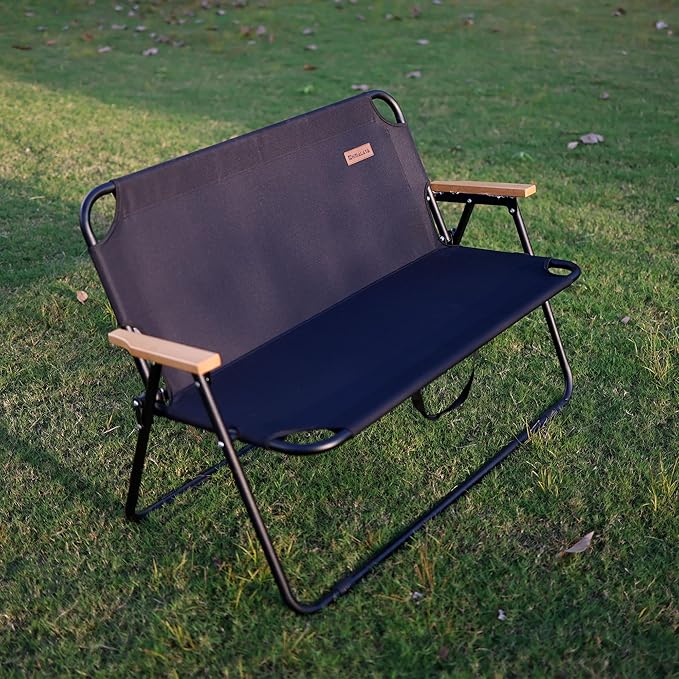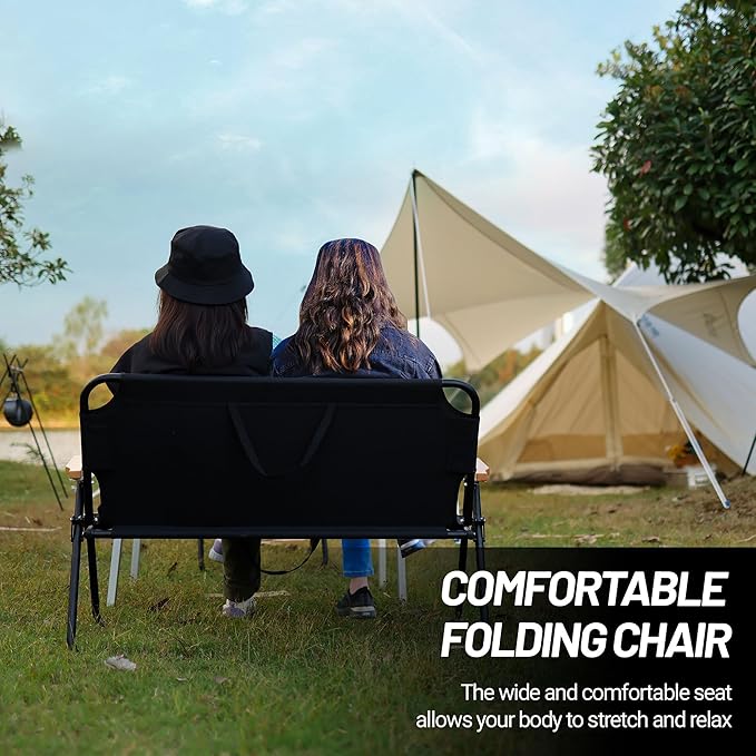 Himalaya Double Camping Chair Sofa Loveseat, Oversized Folding Bench Chair Seating Camp Chairs for Indoor Outdoor Lawn Soccer Sports Patio Beach (1 Pack Double Black)