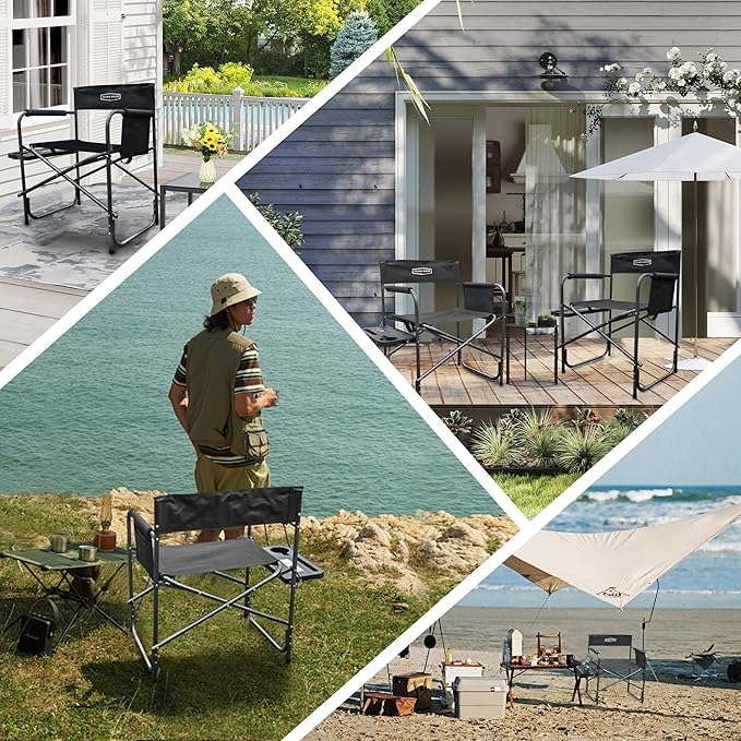 YOUNG WOOD Camping Directors Chair with Side Table, Foldable and Portable, Fishing,Trip,Picnic,Hike,Lawn,Sports,Beach,Outdoor Camping Chair for Adults,Drink Holder and Mobile Storage,2p