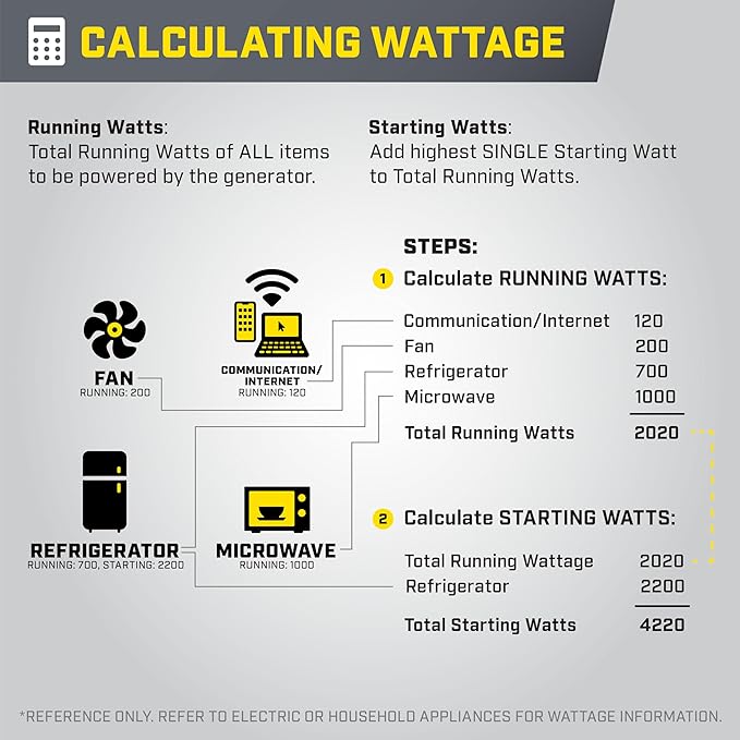 - With an ultra-quiet 64 dBA from 23 feet, enjoy 4000 starting watts, 3000 running watts and up to 10 hours run time on gasoline, and 2700 running watts and up to 25 hours on propane