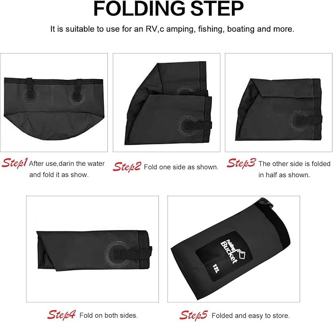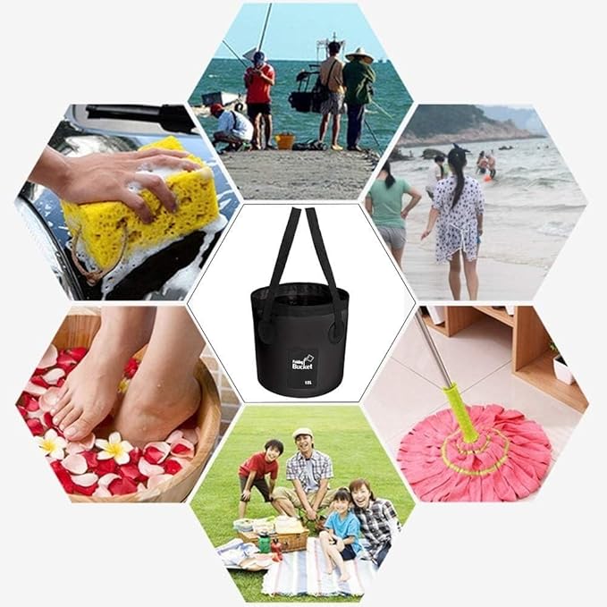 Collapsible Bucket with Handle, Multifunctional Foldable Water Container for Camping, Hiking, Traveling, Fishing, Washing, Gardening, Waterproof, Durable, Lightweight, Black