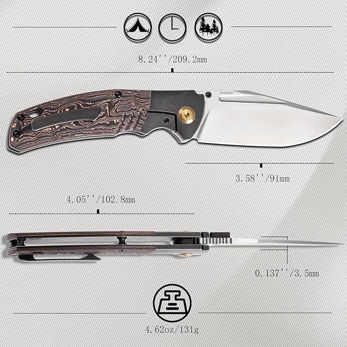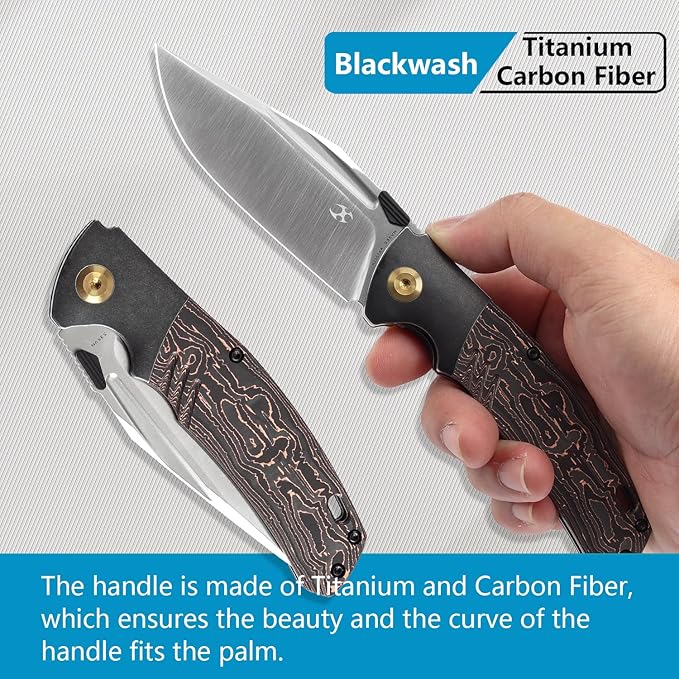 KANSEPT Hinterland Pocket Folding Knives for Men EDC Camping Folding Knife 3.58'' Satin CPM S35VN Blade Pocket Knife with Blackwash Titanium + Copper Carbon Fiber Inlay Handle Everyday Carry K1057A4