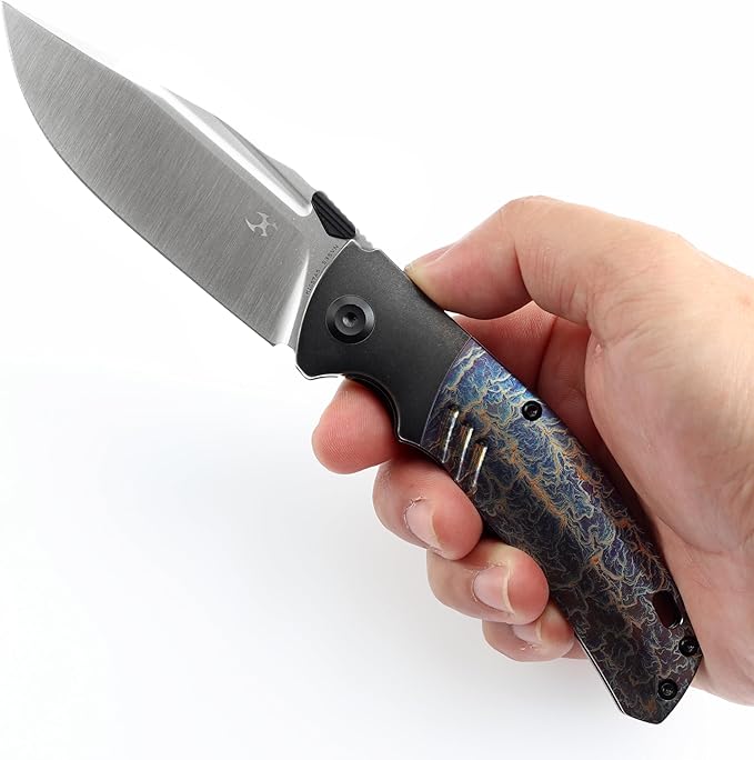 KANSEPT Hinterland Pocket Folding Knives for Men EDC Camping Folding Knife 3.58'' Satin CPM S35VN Blade Pocket Knife with Blackwash Titanium Lightning Strike Finished Titanium Inlay Handle K1057A5