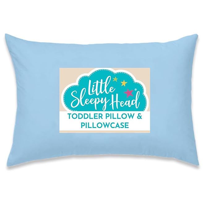 Little Sleepy Head Toddler Pillow with Pillowcase 13x18 - Kids Pillow for Sleeping - Toddler Pillow - Better Neck Support Ergonomic Pillow and Toddler Pillowcase - Best Pillows for Kids (Blue)