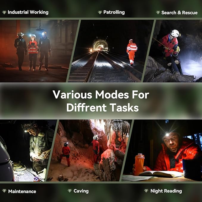 - Versatile Uses with One Lamp: The HS42 headlamp offers good versatility. Its red light mode and magnetic base enable various applications. The detachable headband allows you to use it as a right-angle flashlight, perfect for those tight spaces. Whether as a rechargeable headlamp or a right angle flashlight with a magnetic tailcap, this light is ideal for hands-free work, making it an essential tool for outdoor adventures, hunting, camping, hiking, fishing, mechanical repairs, and more.