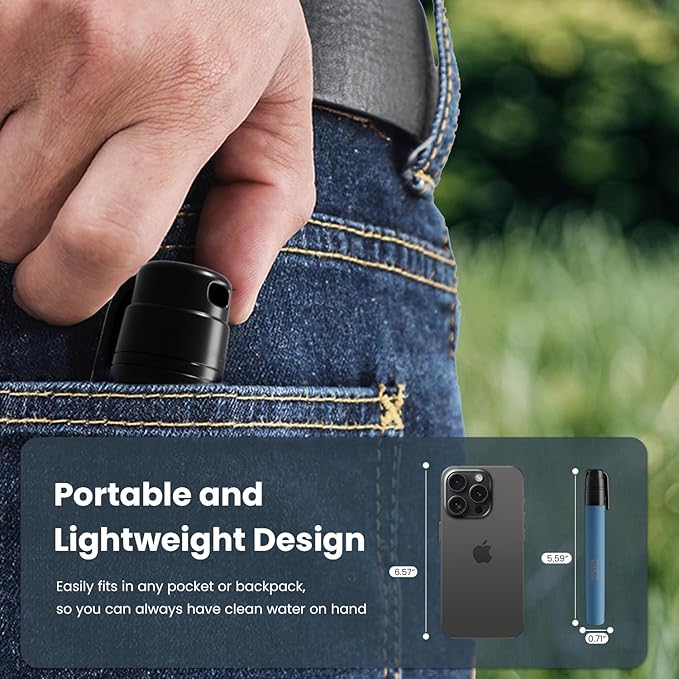 - Portable & Compact - This survival straw at only 5.59'' long and 0.71" in diameter. It weighs just 1.5 ounces, whether you're embarking on a long-distance bike ride or exploring off-road trails, this water filter straw is a compact and lightweight solution to ensure access to clean water.