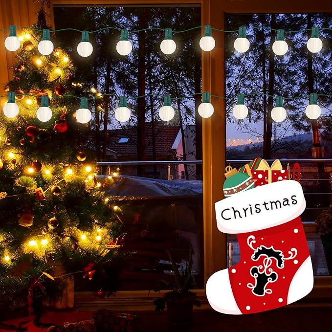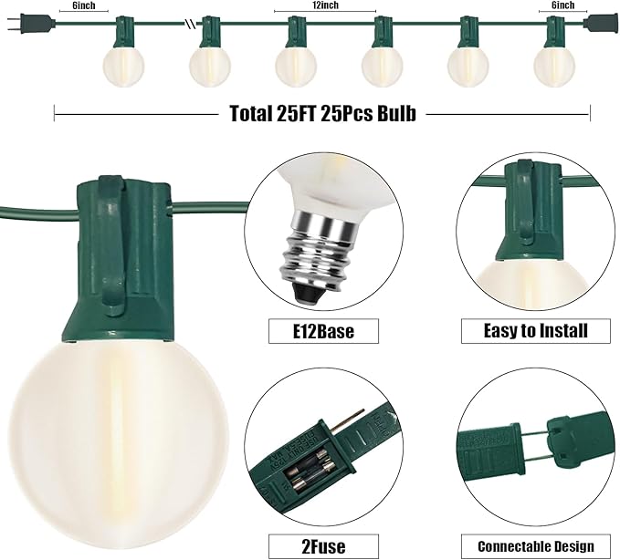 - Frosted White String Lights-25FT Outdoor string lights with 27 frosted white G40 Edison LED bulbs. Outdoor patio string lights is suitable for indoor/outdoor lighting applications. Fits great for patio, backyard, deck, bistro, café, pergola, garden, market, wedding, party, Valentines day, Christmas decoration