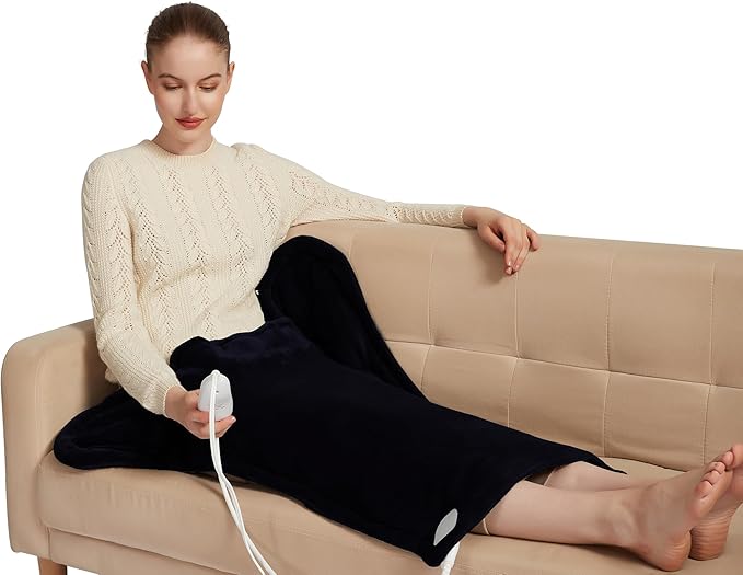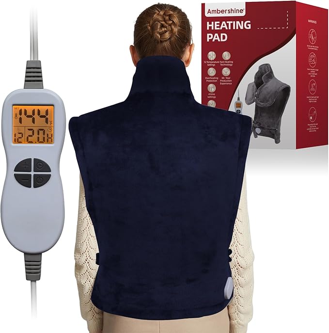 Ambershine 26"x35" XXXL King Size Neck& Shoulder& Back Heating Pad with 12 Temperature Settings& 4 Auto-Off Countdown Timers, Pain Relief for Back/Neck/Shoulder, Christmas Gift for mom dad(Navy Blue)
