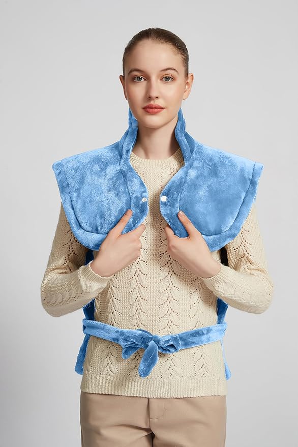 Ambershine 26"x35" XXXL King Size Neck& Shoulder& Back Heating Pad with 12 Temperature Settings& 4 Auto-Off Countdown Timers, Pain Relief for Back/Neck/Shoulder, Christmas gift for mom dad(Light Blue)