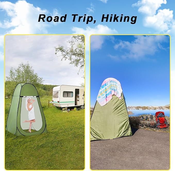 - Versatile :The camping bathroom provides a private space for outdoor showers, dressing and toilet facilities, allowing you to protect privacy in the great outdoors without worrying about prying eyes, The shower bag can be used for shower,hand washing ,dishwashing ,foodwashing, etc