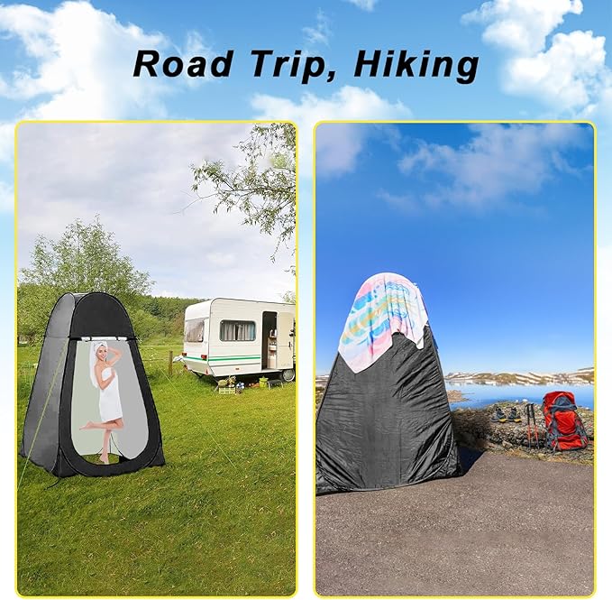 - Portable and Lightweight :The portable outdoor camping bathroom tent and the shower bag can unfold and fold in seconds,and store in the carry bag, weighs 6lb ,very convenient to carry .