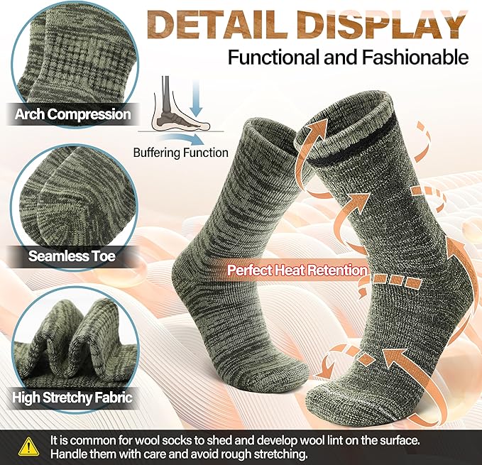 • Perfect Gift Idea: Surprise your loved ones with these winter wool socks on birthdays, Valentine’s Day, Father’s Day, Mother’s Day, Christmas, or any special occasion. Give the gift of warmth and comfort for their everyday wear and outdoor escapades!