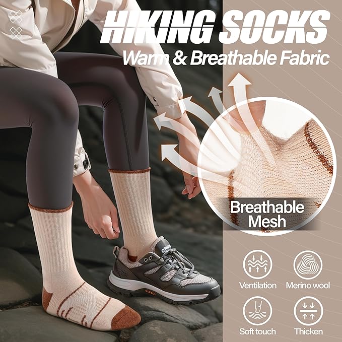 ANTSANG 5 Pairs Merino Wool Hiking Socks for Men & Women Thermal Winter Warm Moisture Wicking Cushion Boot Socks