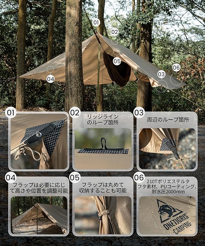 OneTigris Proteus Camping Tarp, Versatile Waterproof Lightweight Tarp Shelter with Doors, Extra Large 20.1ft x 9.2ft, Ideal for Camping, Hiking, Backpacking, Tent, Bushcraft