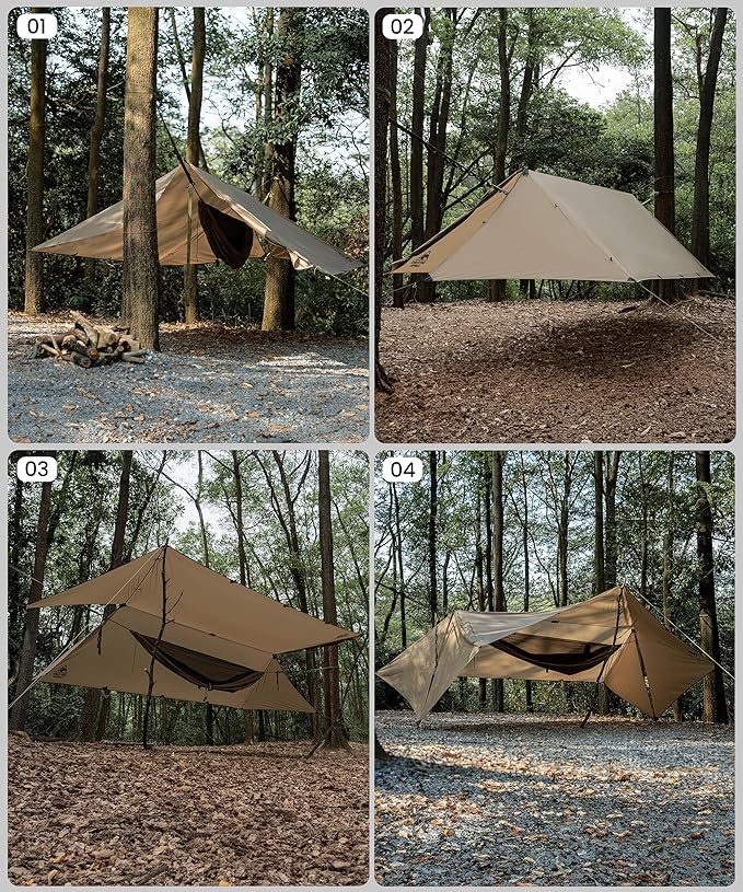 - ใ๐๐ช๐ก๐ก๐ฎ ๐๐ฆ๐ช๐๐ฅ๐๐ใThe tarp tent comes with 12 stakes, 10 guy-lines (9.8 ft), and a sturdy stuff sack for easy carry, perfectly made for hammock campers, bushcrafters, backpackers, outdoor BBQ and picnics, fishing, trekking, hiking, etc