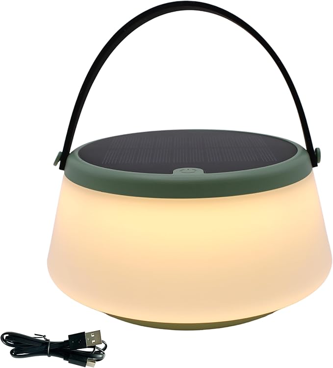 - 2-IN-1 PORTABLE SOLAR LANTERN - Our 2-in-1 Portable Solar Lantern/Lamp provides perfect lighting for use with outdoor decks, patios, pools, camping and hiking. The LED light and included USB-C charging cable also provides bright lighting for indoor use as a bedside lamp, kids lamp or reading lamp.