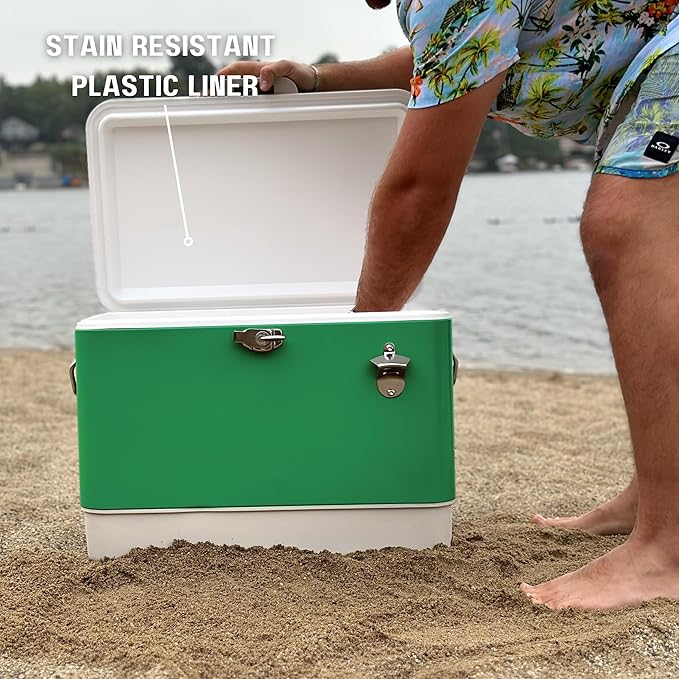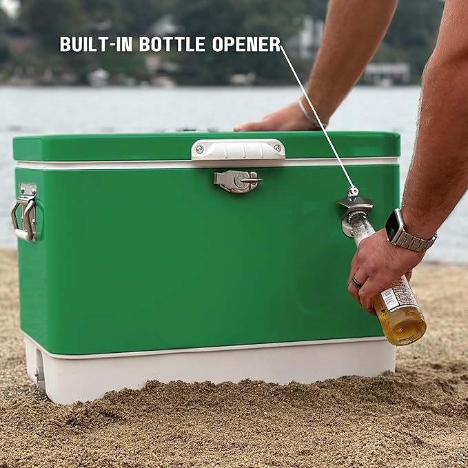 - CONVENIENT ACCESS: Equipped with a built-in bottle opener, this vintage cooler lets you pop open your favorite beverages with ease. Enjoy your drinks without worrying about searching for a bottle opener.