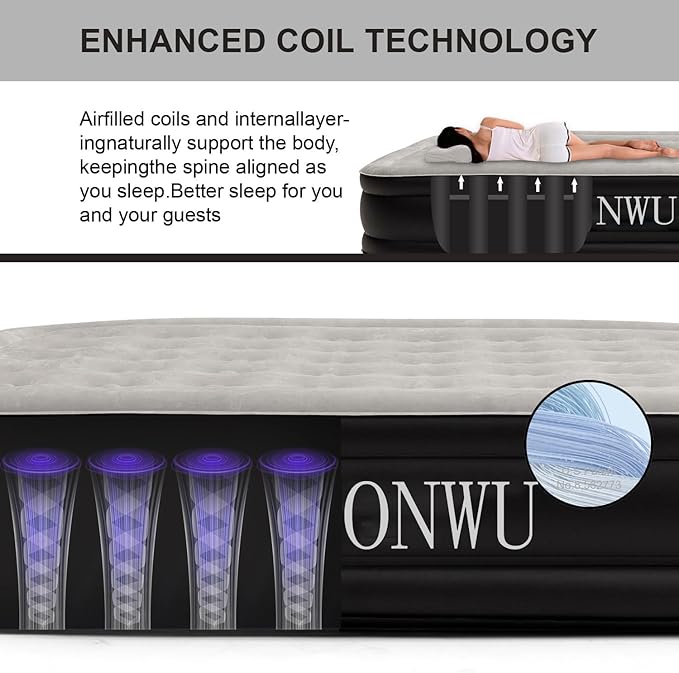 - Excellent guarantee:Oqsonwu camping air mattress queen with built in pump excellent quality assurance is based on our factory quality. Every air mattress needs to undergo repeated tests and load-bearing experience before leaving the factory. Only when all the standards are met can it be sent to you. Therefore, we are confident to provide you with the best quality products. All Oqsonwu products provide a one-year quality warranty. If you have any quality problems, please contact us in time and we will give you a satisfactory reply as soon as possible.