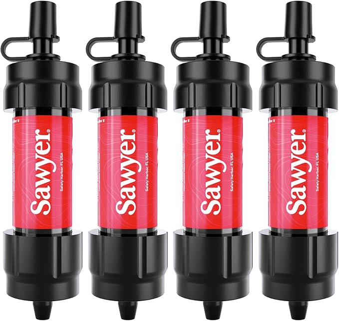- Filter rated up to 100,000 gallons; Includes four Sawyer MINI filter and four cleaning plungers.