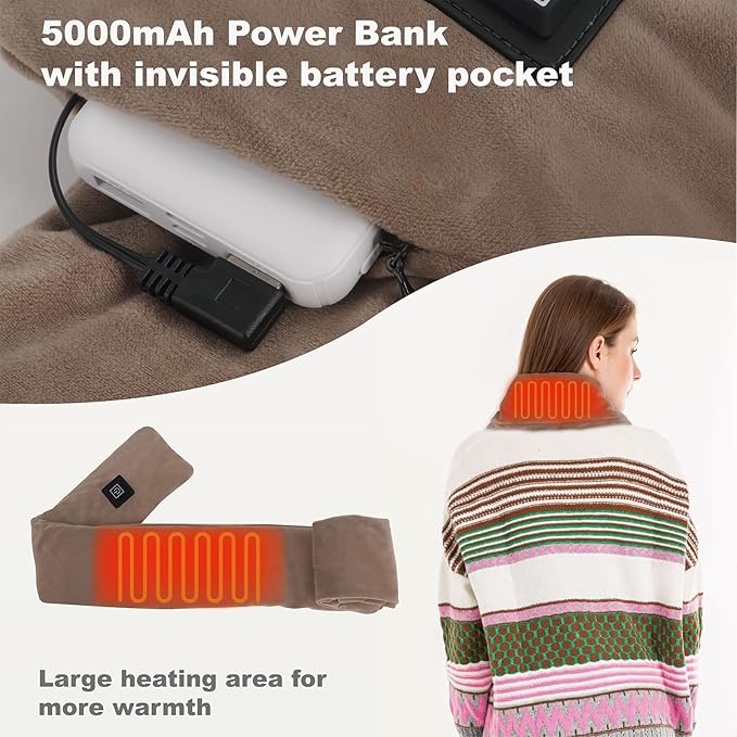 - ๐ฅ Enhanced Heating Coverage: Featuring a larger heating area, our heated scarf covers the entire back of the neck. The carbon fiber heating wire quickly warms up, providing consistent heat to keep your neck warm and help relieve muscle pain.