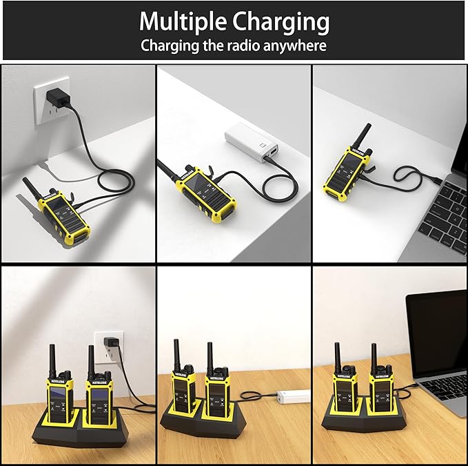 - 【Diversified Features and User-Friendly Design】Palm size; Light weight; Push to talk (PTT) button; 10 call tone settings; Keypad lock; LCD screen with backlight, Belt clip with lanyard hole; Convenient Type-C charging interface.