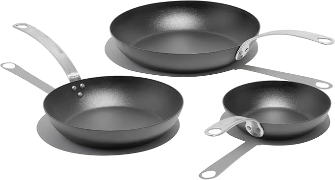 - Includes: 8" Seasoned Blue Carbon Steel Frying Pan | 10" Seasoned Blue Carbon Steel Frying Pan | 12" Seasoned Blue Carbon Steel Frying Pan