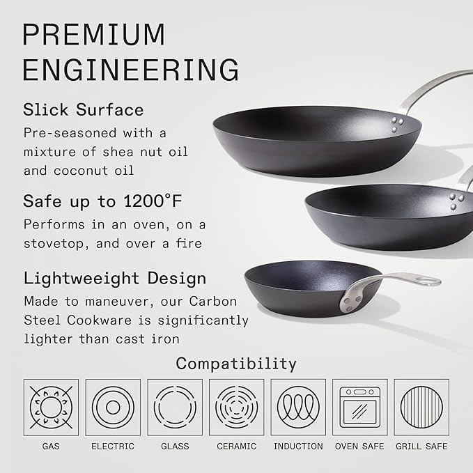 - Loved by Chefs Worldwide - Made In Carbon Steel delivers restaurant-quality sears on proteins and veggies while developing a mesmerizing non-stick surface with proper seasoning and regular use