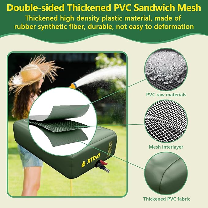 - 【Excellent Sealing】Our water storage bladder seams use high-temperature welding technology to withstand tremendous pressure without leaking. This improves the service life of the water bladder. Attached repair patches, when the water bladder is punctured by hard objects, the patches can easily repair the water bladder. Its reusable, simple frame assembly allows you to use it whenever you need our water barrel again.