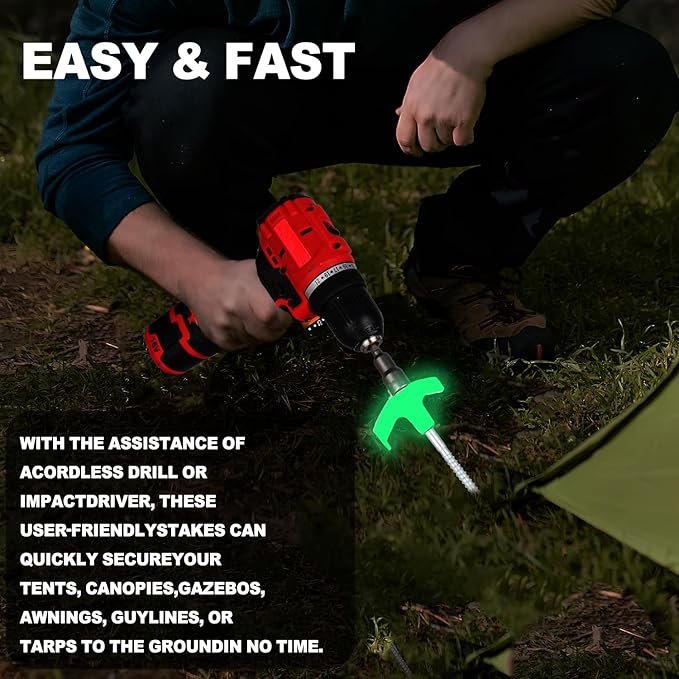 - Easy to install:Our tent stakes metal Setup faster,with the help of a cordless drill or impact driver, these easy-to-use stakes will secure your these stakes will provide you with a reliable anchor point making them a versatile and essential addition to your camping.