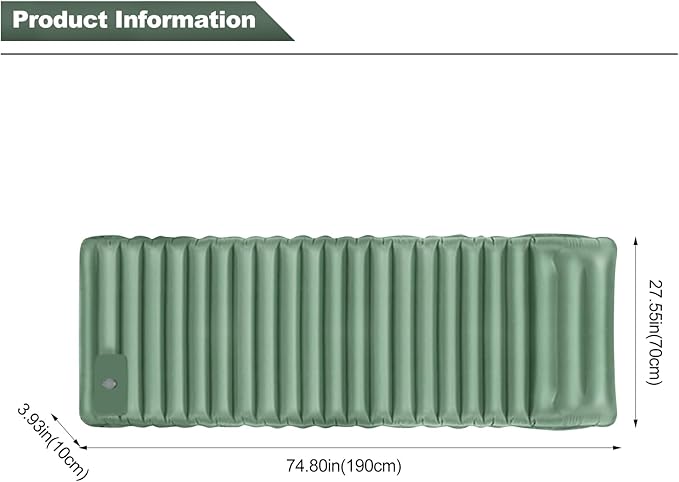 - 【Durable and comfortable mattress】 The new creative inflatable mattress adopts ergonomic design. It is in line with ergonomics to support all pressure points, air support units, strip array welding connections, high -density and comfortable materials, which can keep your body away from uneven ground and hard rocks, ensuring the maximum comfort and warmth.